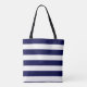 Bolsa Tote Marinho de faixas náuticas, azul e branco