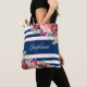 Bolsa Tote Marinho White Stripe Moderna Floral Personalizada