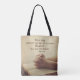 O saco de tote personalizado inspiracional mostra as mãos rezando em uma Bíblia e apresenta uma parte da escritura tirada da Bíblia Verse Mark 11:24, "Portanto eu digo a vocês, qualquer coisa que vocês perguntem quando rezarem, acreditem que os recebem, e os terão."