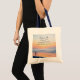 Uma bolsa de tote de escritura inspiradora mostra um belo pôr do sol amarelo, laranja e azul. Ele apresenta a Bíblia Verses Matthew 11:28, nas palavras de Jesus, "Venha até mim, todos vocês que estão cansados e sobrecarregados e eu te darei descanso."