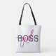 Esta bolsa de tote rosa e preto quente é o presente perfeito para uma chefe feminina. Você tem a opção de personalizá-lo com o nome dela, ou você pode optar por deixá-lo despersonalizado. Para personalizar, basta clicar em "Personalizar este design", e Zazzle cuidará do resto.