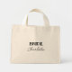 Esta linda mini bolsa tote apresenta o nome da Noiva em elegante letra cursiva. Um design moderno minimalista. Para editar o texto, clique no botão personalizar. Lembre-se de editar ambos os lados.
