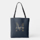 Minimalist Script Metallic Navy Blue Gold Monogram Tote Bag