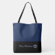 This cute stylish large tote bag is shown in Navy and black bottom color block style with a pageant crown similar to the iconic crown. Custom text for you to personalize. Sample on front and back is Miss Montana. Both crown and text are color changeable. You can also change the color of the bag.