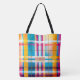 Apresentamos nossa Bolsa Tote Personalizada, a combinação perfeita de elegância e vibrações de verão. Esta edição de verão da bolsa tote apresenta um design xadrez tradicional elegante com fucsias, azuis, amarelos e acentos dourados impressionantes.