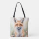 Carregar seu essencial com um toque de reluzente usando este saco de tote com uma pintura aquosa de uma raposa lúdica cercada por flores margaridas. Perfeito para tarefas diárias, comprar ou adicionar um pouco de encanto inspirado na natureza a qualquer passeio.