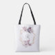 Bolsa Tote Moldura Dourada de Magnólias Rosa Branco Monograma