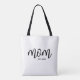 Simple Script Mom Personalized Tote Bag. Celebrate motherhood with this minimalist design featuring the word “mom” in a flowing handwritten script font on both sides in black on a white tote bag. At the bottom right, a classic serif “est. year” adds a personal touch—perfect for a mom-to-be, a new mom, or to celebrate mom any time. Tote background color can be changed to any color. Great for Mother’s Day or everyday use, this clean, modern design offers a timeless way to honor mom in style.