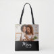Bolsa Tote Mom Established Date White Script Photo on Black