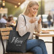 Celebrate motherhood in style with this modern Mom Established tote bag, featuring white typography and the year she became a mom. Fully customizable, add a year for each child. This makes a thoughtful gift for new moms or a sentimental keepsake for yourself.