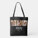 Carry memories close with this black tote bag featuring “Mom” and your personalized “established” date in elegant white script. Add up to three of your favorite photos to make it uniquely yours—a stylish blend of sentiment and function. Perfect for everyday errands, gym trips, or gifting to a new mom, this tote turns treasured moments into a timeless keepsake.