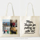 Made from heavy-duty canvas, this tote is built for durability and features four easy-to-customize photo templates. It offers a practical way for a mother to carry her essentials while proudly displaying a gallery of her favorite family moments.