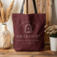 This classic, elegant graduation tote bag features a white monogram initial in open serif font encircled by a vintage line art acanthus crest on a burgundy red background. Personalize the text with the graduate's name, school and class year. Ideal for high school or college graduation.