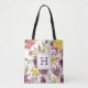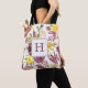 Bolsa Tote Monograma Bonito Floral Marrom Roxo Aquarela