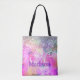 Um monograma elegante de brilho prateado iridescente personalizado Tote Bag. Bonita, moderna e legal para a moda-saborosa e apaixonante da arte. Este design na moda seria excelente para meninas que gostam de designs cintilantes. Adicione seu nome e monograma com uma tipografia caligráfica legal e moderna. Isto faz o doce e perfeito aniversário de 16 anos, casamento, chá de panela, aniversário, chá de fraldas ou festa de solteira presente para alguém que ama luxo de luxo e estilos quíticos. Quer seja para dia de os namorados, Natal ou qualquer ocasião em geral, este saco de tote fofo vai fazer uma ideia de presente excelente para qualquer mulher que ame elegância moderna e brilhante. NOTA: Estes são gráficos impressos - sem brilho real, joias ou peças levantadas.