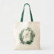 Nossa bolsa personalizada apresenta uma coroa botânica verde e branca de cor d'água com seu monograma inicial de solteiro inscrito no dentro com letra manuscrita.