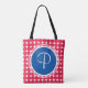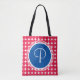 Bolsa Tote Monograma de Bolinhas Azul e Vermelha