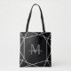 Bolsa Tote Monograma de Cinzas de prata de polígono preto e b