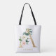 Saco tote floral feminino e elegante com ilustrações de aquarela de flores, folhagens e monograma de folha falsa. Personalize adicionando um nome ou frase curta. Este saco tote floral monograma será perfeito como um presente personalizado.