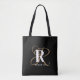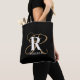 Este saco de tota monograma personalizado na moda moderno apresenta um elegante monograma inicial com script de ouro, com uma inicial e um nome negrito, sobrepostos, sobre um fundo preto.
