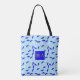 Bolsa Tote monograma de repetição do padrão guarda-chuva azul