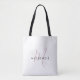 Saco de Tote do Monograma do Script Cor-de-Rosa Blush Branco Moderno Elegante. Um elegante monograma de script Blush Pink combinado com uma fonte limpa de san-serif preta faz uma aparência contemporânea.