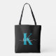 Esta simples e elegante bolsa de tote preto com seu primeiro nome em uma letra de script de tendências em branco digitada sobre sua primeira letra de boné moderno em teal é perfeita para trabalho de carregando, trabalho escolar, livros, projetos de artesanato, qualquer coisa. É na moda e moda e, no entanto, muito clássico.