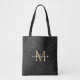 Bolsa Tote Monograma de Script Dourado Floral Preto Elegante
