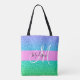 A cinzenta e o azul vítreo, o verde, o aqua e a tartaruga-mermaid brilham o nome do monograma do gradiente e o saco inicial do tote. Seu nome personalizado e monograma são escritos em um elegante roteiro escrito à mão com um fundo rosa. Um aniversário perfeito ou presente de Natal!