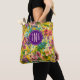 Bolsa Tote Monograma do padrão floral amarelo púrpura da vind