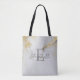 Bolsa Tote Monograma Dourado Mármore Cinza