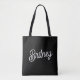 Bolsa Tote Monograma e Nome Personalizados de Branco Preto Mo