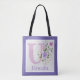 Saco de senhoras. Saco de damas com Design floral apresenta o Monograma & Nome do destinatário com Flores em ambos os lados no estilo de pastel de cor de água. Inicial é a letra U. Gift para Ursula.