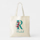 Bolsa Tote Monograma em letra R com fonte florida em rosa azu