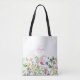 Saco de tota floral de flor silvestre rosa. Fácil de mudar o texto. Bonito floral de aquarela para primavera e verão.