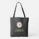 Esta bolsa tote moderna apresenta uma margarida branca simples com centro amarelo e um nome personalizado em texto verde. Este design minimalista fará um ótimo presente para familiares, amigos, colegas de trabalho, equipes esportivas e mais. Personalize o texto para atender às suas necessidades.