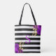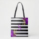 Bolsa Tote Monograma Floral Dourado Roxo Branco Preto