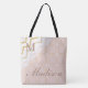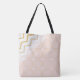 Nossa bolsa tote com monograma personalizado é adornada com um desenho geométrico e zigue-zague em tons de pêssego, rosa e dourado. Personalize com seu nome e inicial. Veja nossa linha completa de produtos em nossa loja Zazzle.