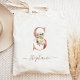 Esta elegante bolsa apresenta um grande monograma de letra "S" em folha de ouro rosa falso, decorado com um buquê floral de marfim vintage aparado com folhagem verde e dourado rosa. Personalize-a com o nome dela em escrita à mão em ouro rosa, com floreios no início e no final. É um presente perfeito para as damas de honra! Outras letras do alfabeto estão disponíveis em nossa loja Zazzle; se você não encontrar as que precisa, sinta-se à vontade para entrar em contato conosco em weddingpapernest@gmail.com. (Para manter os floreios, substitua apenas as letras do nome.)