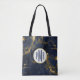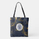 Bolsa Tote Monograma Moderno Azul-Marinho e Dourado em Mármor
