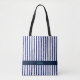 Bolsa Tote Monograma moderno de listras azuis e brancas