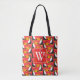 Um saco de totas tropicais de monograma em moda, este design apresenta toques bonitos e coloridos sobre um fundo vermelho. Há um quadrado vermelho transparente com a letra do monograma. Sturdy e Trendy, peça seu bolsa hoje! Padrão tropical criado por: AMBilustrações http://www.etsy.com/shop/AMBillustrations/
