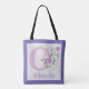 Saco de senhoras. Design apresenta o Monograma & Nome do destinatário com Flores em ambos os lados, no estilo pastel de cor de água. Inicial é a letra G. Saco de damas com Floral Design. Presente para Glenda.