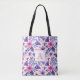 Bolsa Tote Monograma personalizado de flores roxas pintadas à