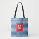 Bolsa Tote Monograma Personalizado de Gingham Azul Chic
