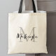 Esta bolsa tote moderna e elegante apresenta um monograma estiloso e nome em tipografia cursiva. É facilmente personalizável e será um ótimo presente para sua comitiva de casamento, madrinha de honra, damas de honra, mães do noivo e da noiva, e a menina das flores vão apreciar este presente atencioso.