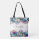 Adicione o seu nome ou texto a este abstrato púrpura, design de água de lavagem de álcool azul e dourado nesta bolsa de tote. Estes fazem presentes e presentes de noivas excelentes para ela.