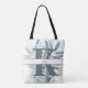 Personalize esta bolsa de tote de cor aquática elegante com seu nome e letra inicial. A design boho tropical apresenta folhas tropicais verdes empoeiradas e poeirentas que haviam sido pintadas originalmente em aquarela. Faz um presente perfeito para damas de honra, amigos, família ou para você mesmo!