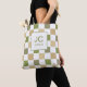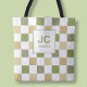 Bolsa Tote Monograma Xadrez Verde Moderno Simples Iniciais