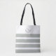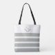Um clássico design elegante com listras largas modernas, este saco de totas tem uma crista monograma para personalizar com duas iniciais e é embelezado com uma coroa de louros do ramo da oliveira em tons verdes de cor prateada. Use as iniciais do seu primeiro e sobrenome, ou duas iniciais do parceiro ou do cônjuge. Personalize o modelo de texto fácil de usar com as iniciais desejadas. Esta bolsa faz um belo presente que é decorativo e prático.